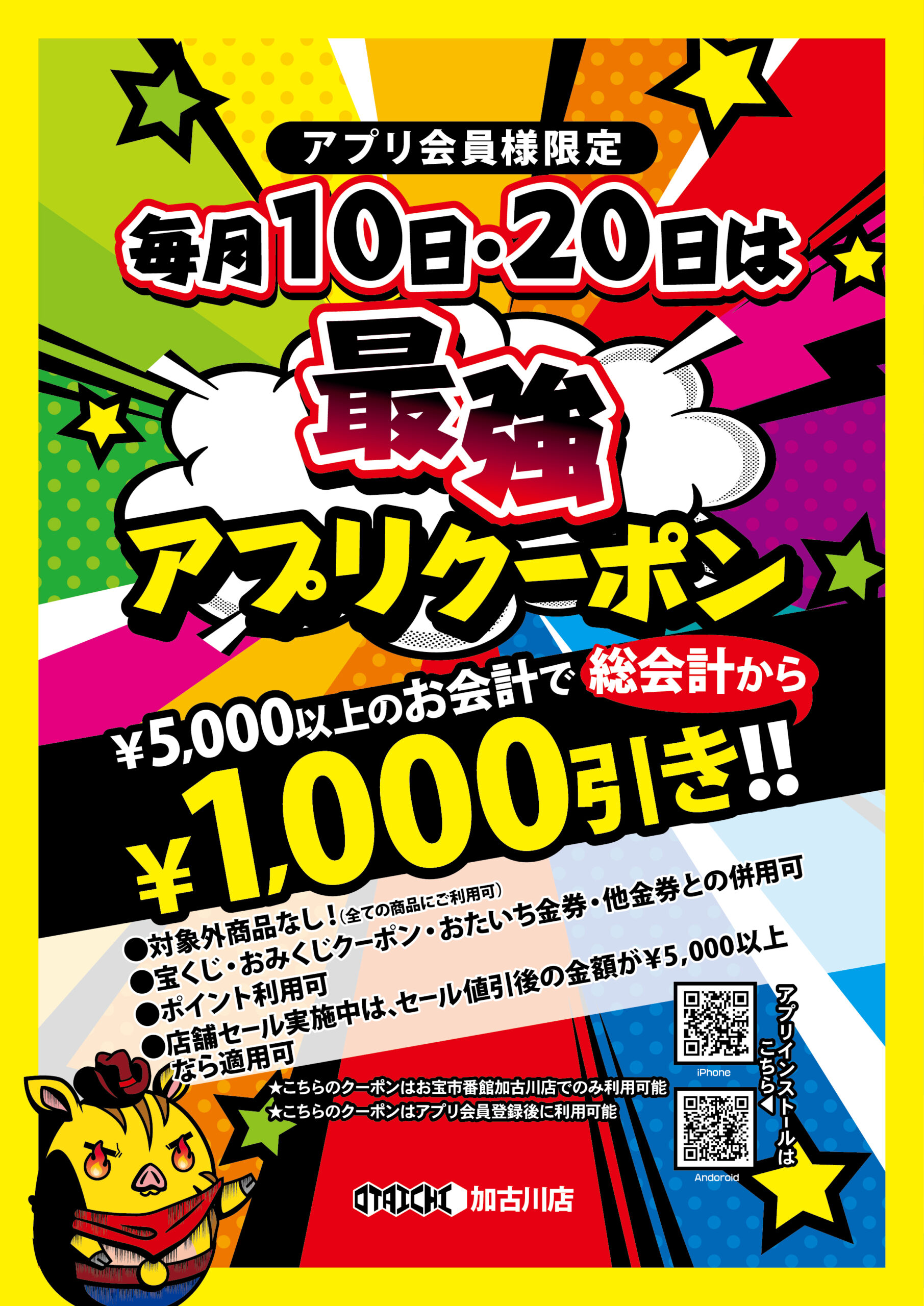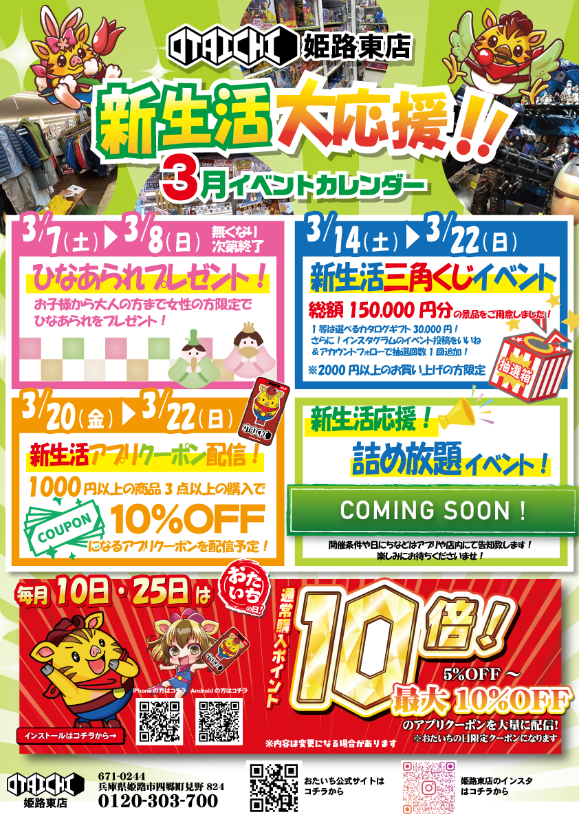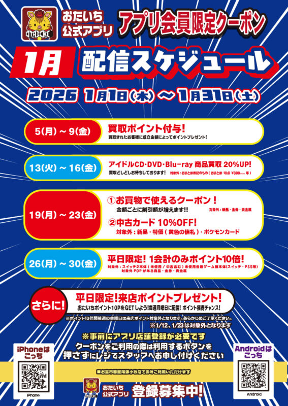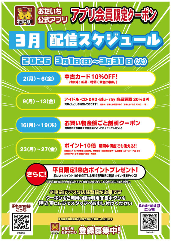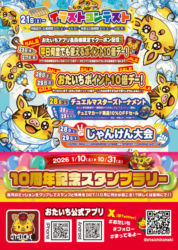 おたいちポイントを貯めて、オトクにお買物を楽しもう! お店で使えるクーポンやイベント情報も満載!