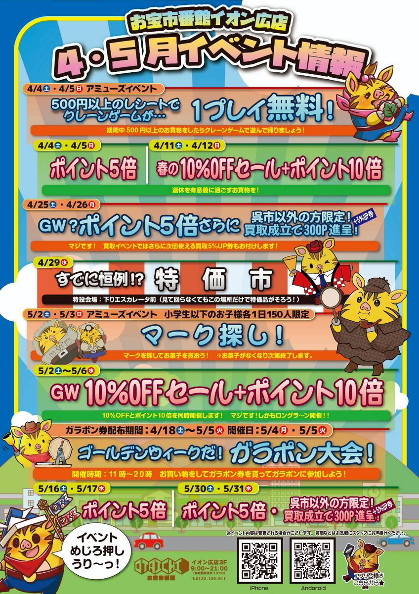 お宝市番館や関連ショップのご紹介、イベントPRなど、不定期更新。 はっち、うりたも活躍中!